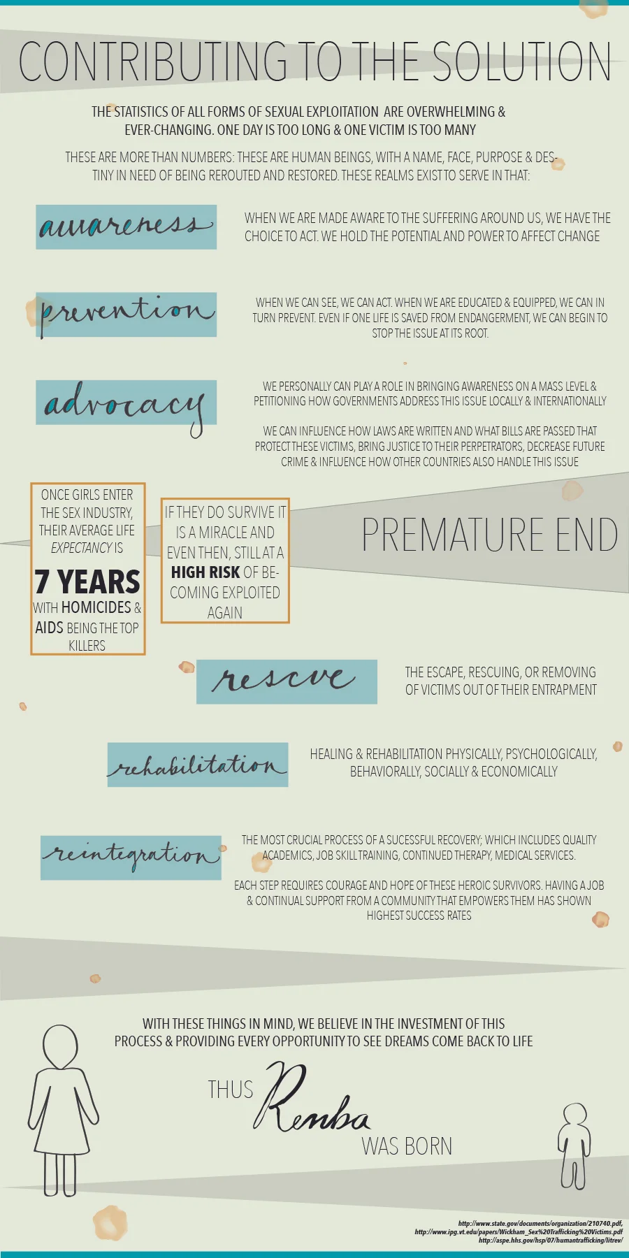 Such information shapes our realities and in order to see these overwhelming statistics change, there are many vital parts, people, voices necessary. In creating sustainable change, we must participate, with wisdom and strategy and place where our passions and expertise fit best. Within one of the most pressing issues of our time, there are countless individuals and organizations in the following realms, addressing these vital needs of the process for victims.